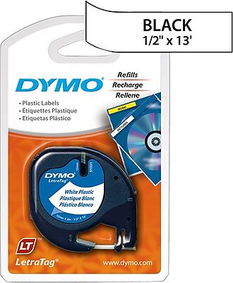 DYMO LetraTag Label Tape, 12mm (1/2") Black on Clear - Staples Create easy-to-read labels for all types of items with this DYMO LetraTag Label Tape Refill. Ideal for home or office organization, the label tape allows for quick identification on storage containers, files, folders and more. The user-friendly tape has an easy-peel backing for trouble-free application and features black print on clear tape for easy legibility.