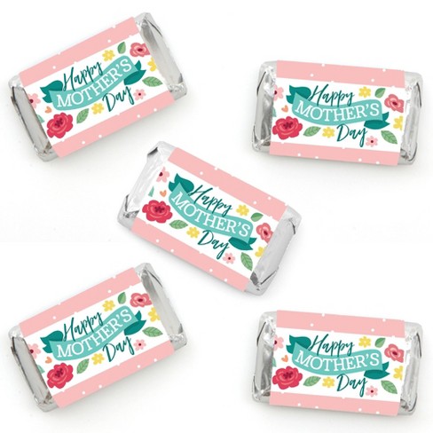 Big Dot of Happiness Colorful Floral Happy Mother's Day - Mini Candy Bar Wrapper Stickers - We Love Mom Party Small Favors - 40 Count